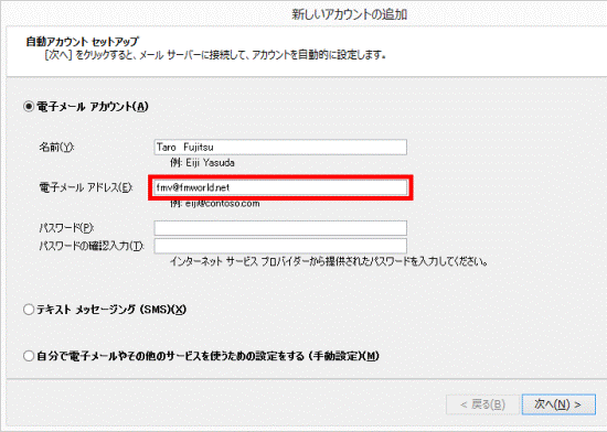すでに入力されています。必要に応じて、修正します。 - 電子メールアドレス