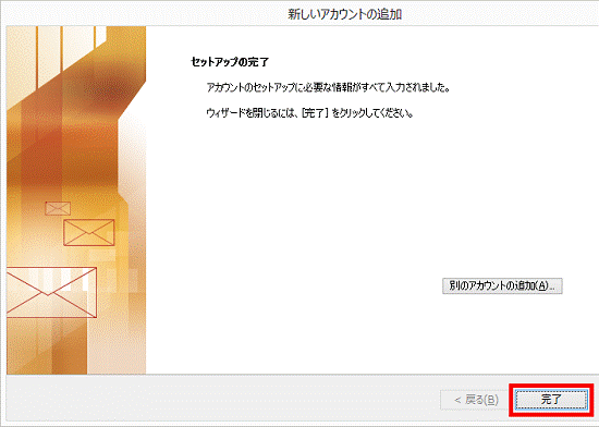 - 「セットアップの完了」(または「電子メール アカウントが設定されました。」)と表示された場合