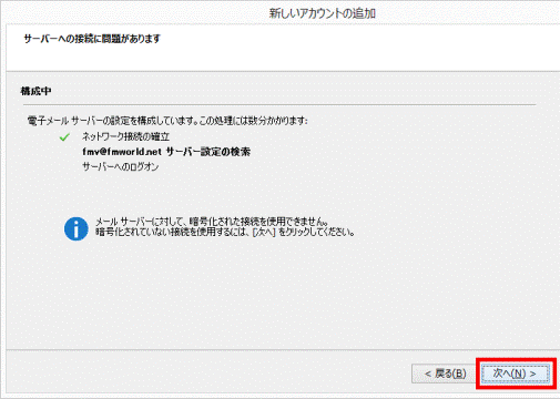 - 「構成中」と表示され、電子メールの設定が自動で開始されます。