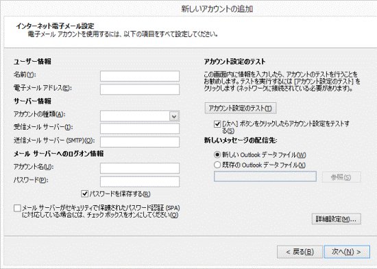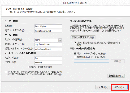 すでに入力されています。必要に応じて、修正します。 - 受信メールサーバー