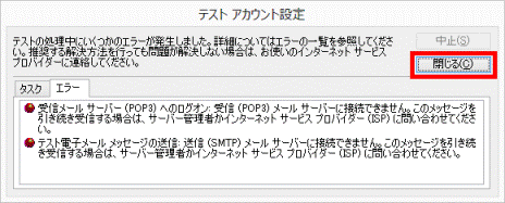 「閉じる」ボタンをクリックし、次の手順に進みます。 - 「テストの処理中にいくつかのエラーが発生しました」と表示された場合