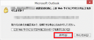 「(メールアドレス)の設定のために、この Web サイトにアクセスすることを許可しますか?」と表示された場合は、メールアドレスに間違いがないことを確認して、「許可」ボタンをクリックします。