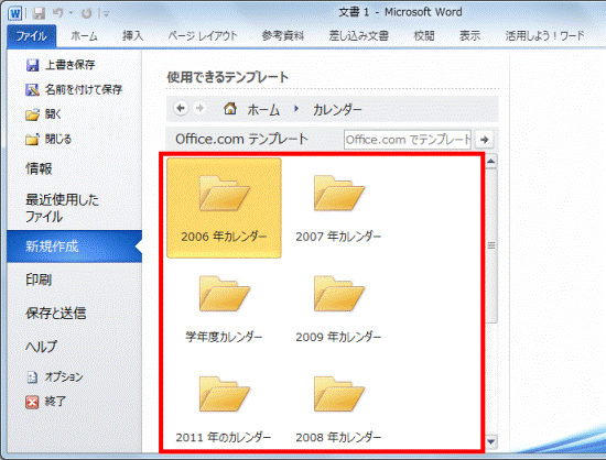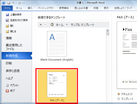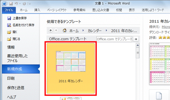 次の手順で、インターネットのテンプレートから文書を作成します。
