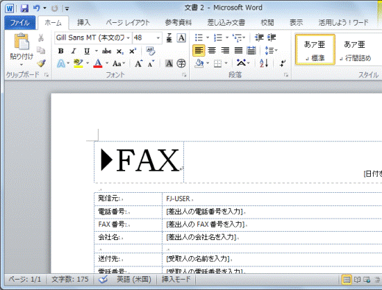 - テンプレートの書式が適用された新しい文書が作成されます。