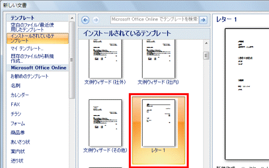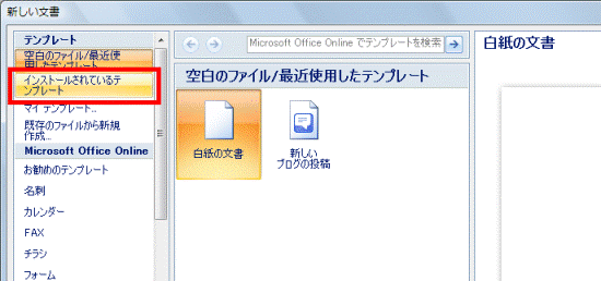 - 「インストールされているテンプレート」欄から、目的のテンプレートをダブルクリックします。