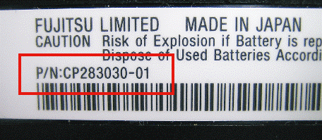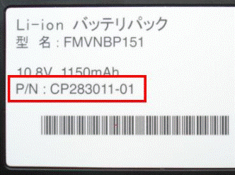 部品番号(P/N)は、取り外したバッテリパックに貼られたシールで確認します。