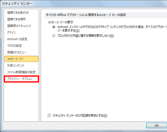 「プライバシー オプション」をクリックします。
