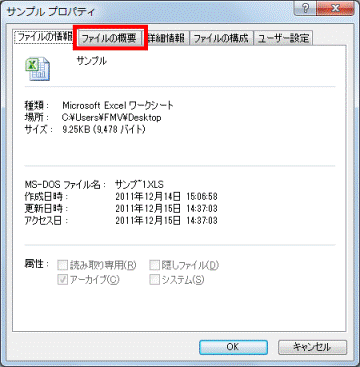 「ファイルの概要」タブをクリックします。