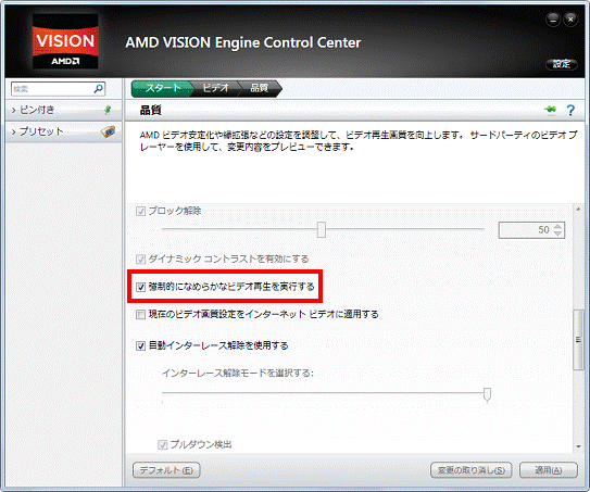 - 「強制的になめらかなビデオ再生を実行する」にチェックが付いているかどうかを確認します。