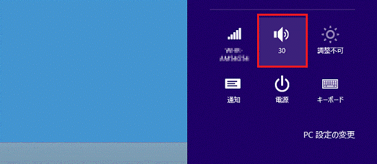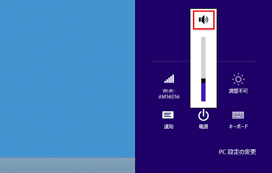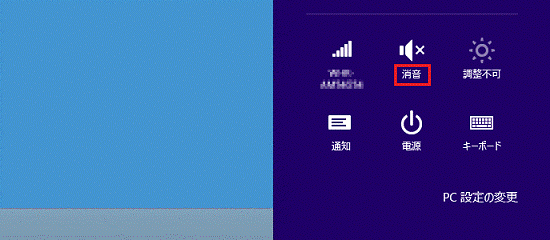 - 「設定」チャームのスピーカーアイコンに「消音」と表示されていることを確認します。