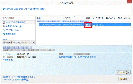 [Internet Explorer 11] アドオンを無効にする / 有効にする方法を教えてください。