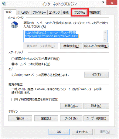 - 「インターネットのプロパティ」が表示されます。
