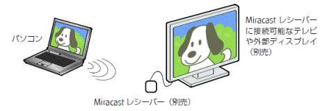Miracast(ミラキャスト)とは、無線LAN機能を利用して、ディスプレイの表示を伝送する機能です。