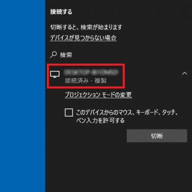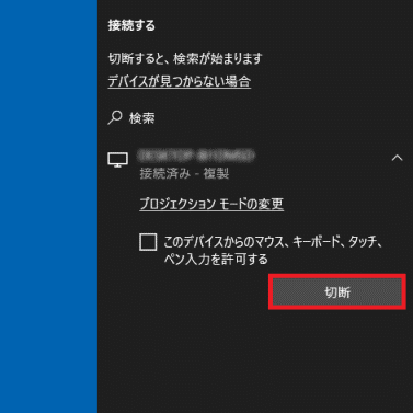 - 接続している対象のMiracastレシーバーの「切断」ボタンをクリックします。
