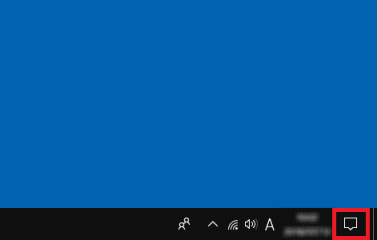 - 画面右下の通知領域にある、「アクションセンター」アイコンをクリックします。