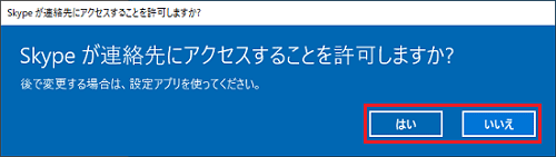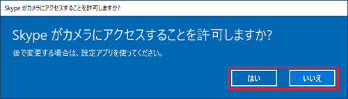 Skypeでカメラを使用する場合は、「はい」ボタンをクリックしてください。