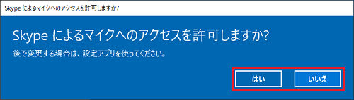 Skypeでマイクを使用する場合は、「はい」ボタンをクリックしてください。
