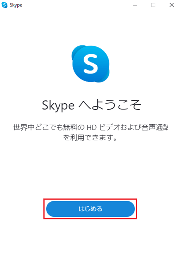 2. 「Skypeへようこそ」と表示された場合は、「はじめる」ボタンをクリックします。