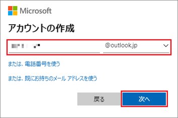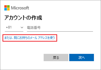 • お持ちのメールアドレスや電話番号をMicrosoft アカウントとして登録する