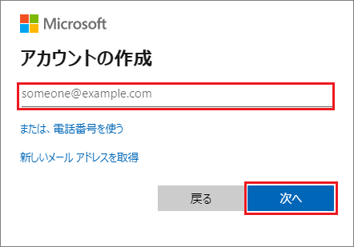 Microsoft アカウントを作成する方法には、次の2種類あります。