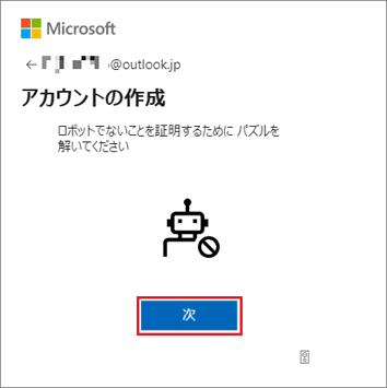 作成するメールアドレスを入力して「次へ」ボタンをクリックします。