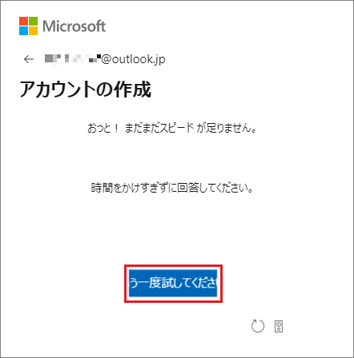 「まだまだスピードが足りません」と表示された場合は、「もう一度試してください」ボタンをクリックし、画像の回転をやり直してください。
