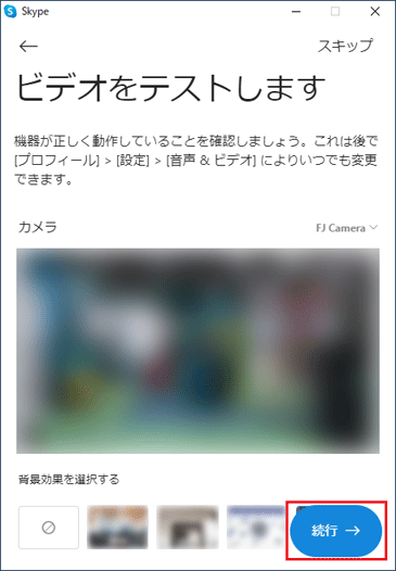 Skypeで、マイクやWebカメラを使う予定が無い場合は、テストをスキップすることも可能です。