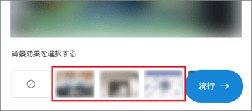 「背景効果を選択する」が表示される場合は、一覧からお好みの背景をクリックすると、バーチャル背景を設定できます。