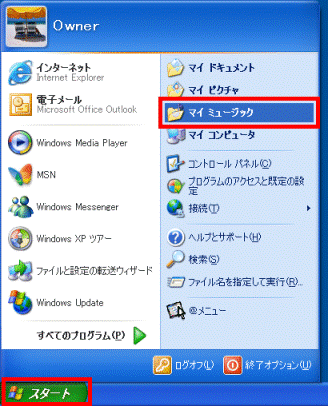 - 「スタート」ボタン→「マイ ミュージック」の順にクリックします。