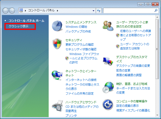 画面左側にある「クラシック表示」をクリックします。