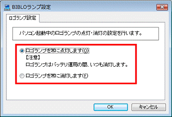 「FMV LOOX」のランプを消灯する / 点灯するように設定する方法を教えてください。(新しいウィンドウで表示)2010年冬モデル〜2011年夏モデルの場合