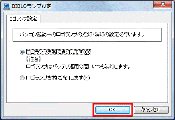 - 「BIBLOランプ設定」(または、「BIBLOランプオフ設定」)をクリックします。