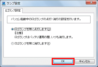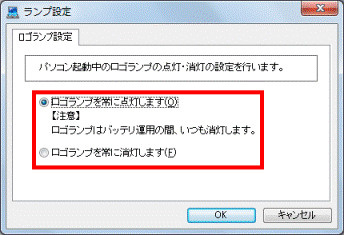 お好みで次の項目をクリックします。- ロゴランプを常に点灯します