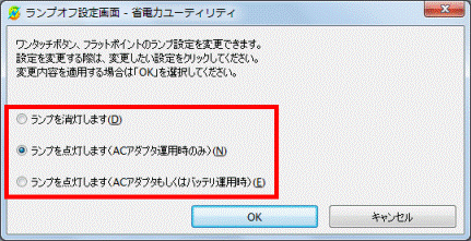 - 「ランプオフ設定画面 - 省電力ユーティリティ」が表示されます。