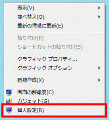 - デスクトップの何もないところを右クリックし、表示されるメニューから「個人設定」をクリックします。