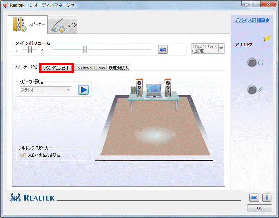 「スピーカー」タブ内の、「サウンドエフェクト」タブをクリックします。