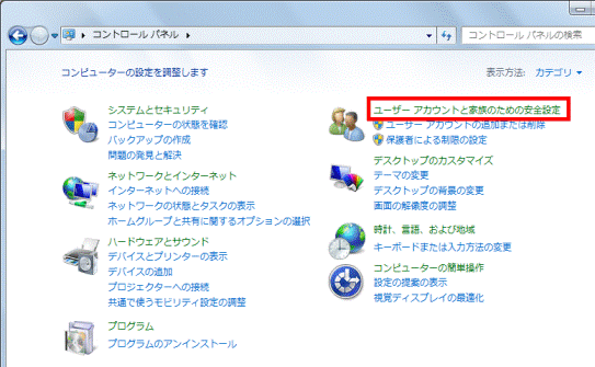 「ユーザーアカウントと家族のための安全設定」をクリックします。