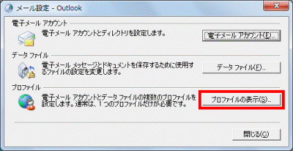 電子メールプロファイルとは、電子メールアカウント、データファイル、電子メール格納場所の情報が保存されているファイルのことです。