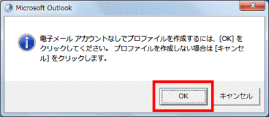 「電子メールアカウントなしでプロファイルを作成するには、[OK]をクリックしてください。」と表示されます。