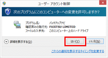 - 「万が一のパソコンのトラブルに備えてデータのバックアップを行いましょう!」と表示されます。