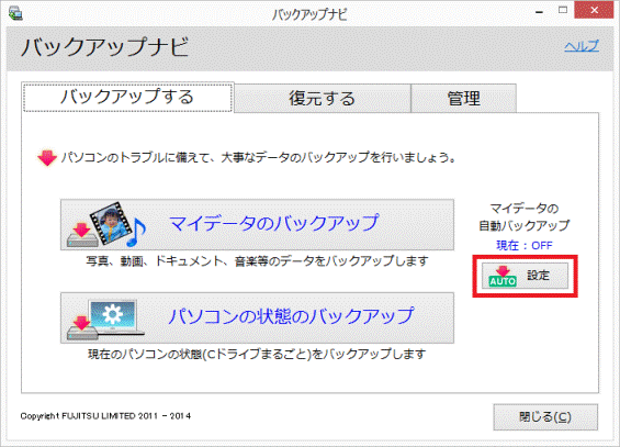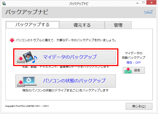 - 「マイデータのバックアップ」ボタンをクリックします。