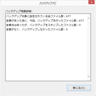 「※バックアップ結果の詳細を見る」をクリックすると、「バックアップ結果詳細」が表示されます。