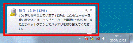 [LIFEBOOK/BIBLO] 「バッテリが不足しています」または「バッテリ残量低下」というメッセージが表示され、すぐに電源が切れてしまいます。