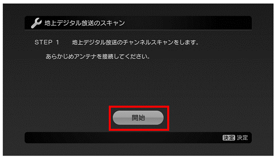 パソコンに、アンテナ線が正しく接続されていることを確認し、「決定」ボタンを押します。