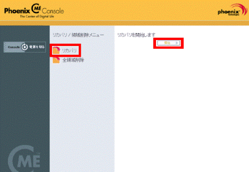 「リカバリ」をクリックした後、「開始」をクリックします。