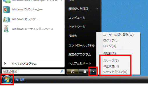 Windows Vista の省電力の状態は複数あります。