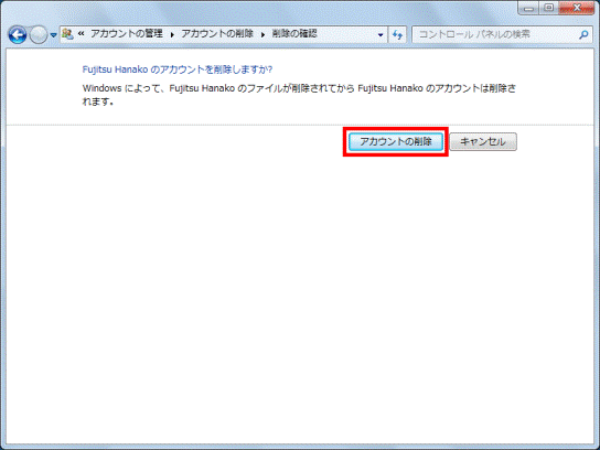 - 「(ユーザーアカウント名)のアカウントを削除しますか?」と表示されます。