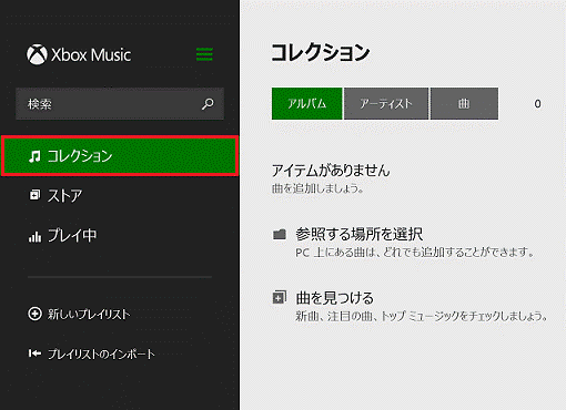Windows 8.1のミュージックは、音楽ファイルの再生や、音楽の購入ができます。