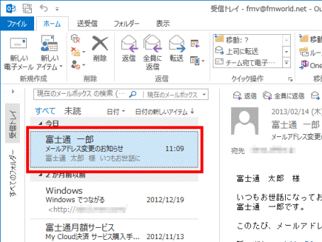 - 連絡先に追加する差出人から受信したメールをクリックします。