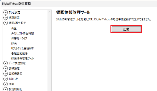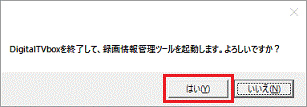 - 「DigitalTVboxを終了して、録画情報管理ツールを起動します。」と表示されます。